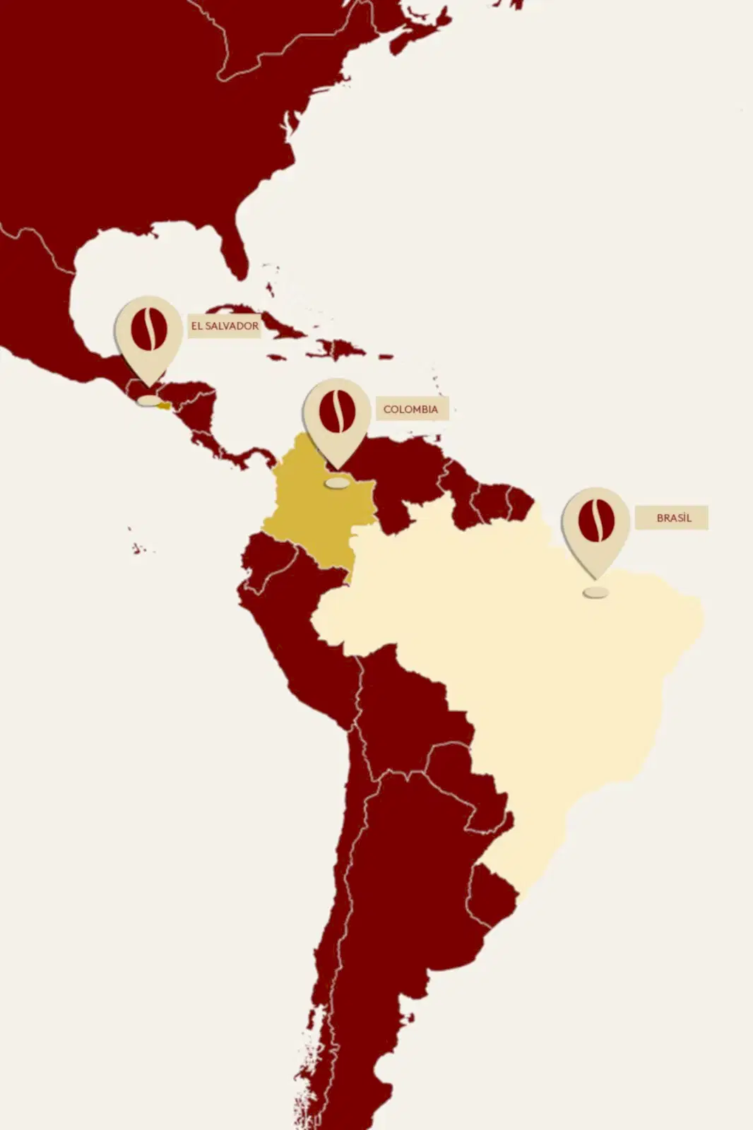 Güney Amerika’nın iki önemli bölgesi; Dünyanın birinci ve ikinci en büyük Arabica kahve üreticisi Brezilya ve Kolombiya. Onlara Orta Amerika’nın eşsiz lezzet profiline sahip El Salvador eşlik ediyor. Bu espresso harmanında krema, karamel, narenciye, çikolata ve fındık notalarını yoğun gövde ile tamamladık.